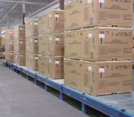 Belt driven roller conveyors are a gravity roller conveyor powered by a narrow bet. Friction created by the belt drive produces a low pressure method of accumulating product, which in turn allows for load to be stopped or stalled on the conveyor surface while the belt continues to run.